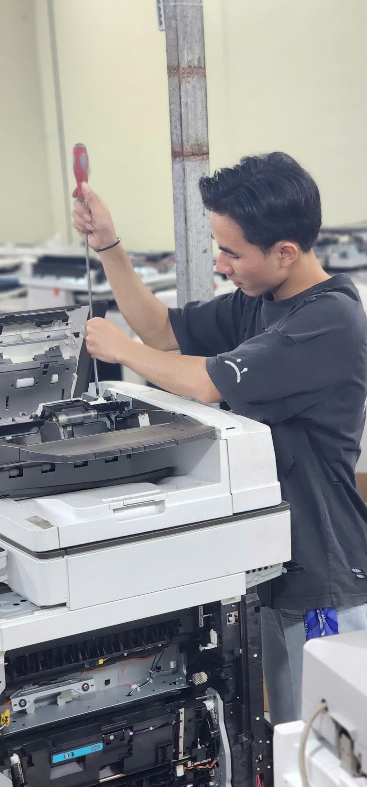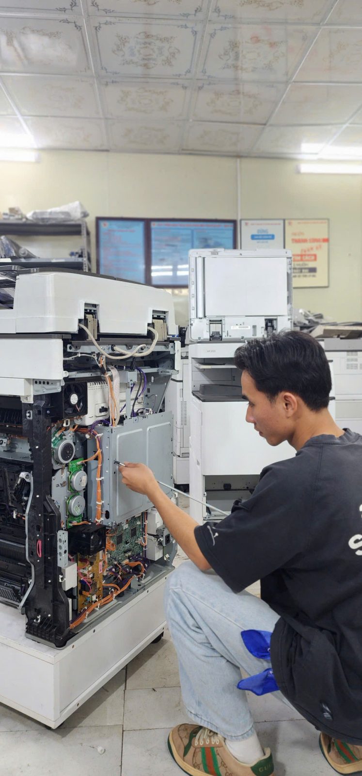 Hỗ trợ sửa máy photocopy nhanh sau 30 phút. Chương trình khuyến mại: Mua máy photocopy tặng 1 thùng giấy hoặc Mua máy photo được tặng 1 ống mực cùng loại. Đặc biệt : Thuê máy photocopy khi ký hợp đồng thuê 12 tháng được tặng 1 tháng miễn phí.